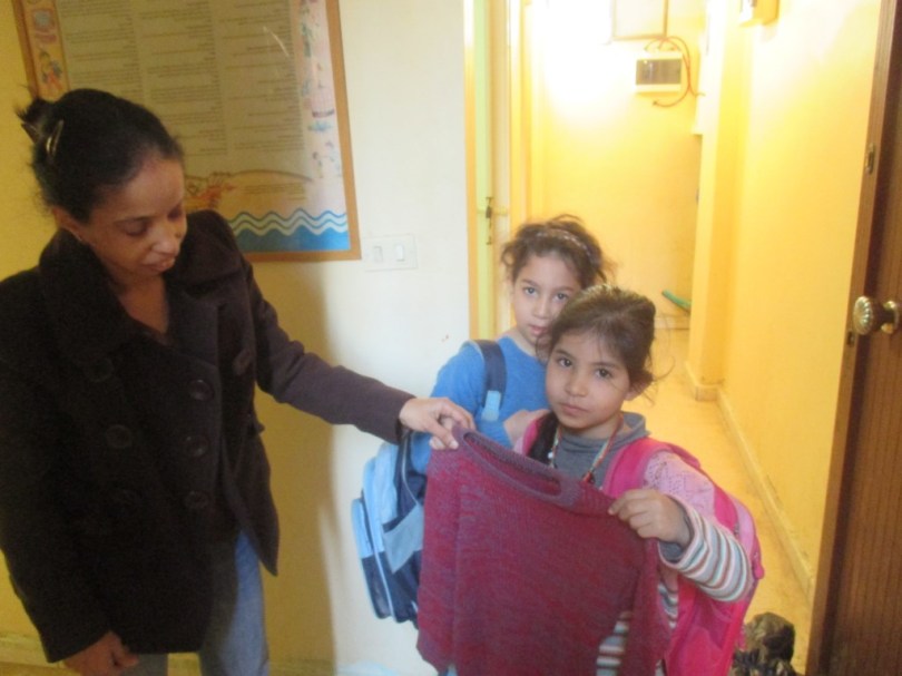 Distributing winter sweaters to the refigee students