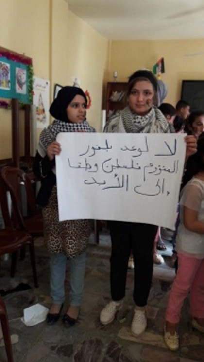 5 November 19, 2018 420 × 744 Nahr al-Bared’s children and parents renew their condemnation of the British colonial promise الأطفال والآهل في نهر البا رد يجددون استنكار الوعد الاستعماري البريطاني 5